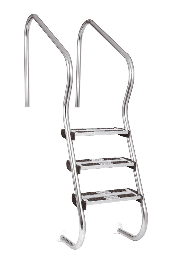 Auf Edelstahlleitern und -einbauteilen können sich unschöne rostähnliche Flecken bilden. Dabei handelt es sich keines Falls um echten Rost, denn alle Hochbecken- und Einbauleitern sind aus hochwertigem rostfreiem V2A Edelstahl gefertigt. Es gibt verschiedene Gründe, wie es zu dieser vermeintlichen Rostablagerung kommen kann: Wurden beim Einbau des Pools Flexarbeiten an Metallteilen vorgenommen, so besteht die Möglichkeit, dass sich mikrofeine Teilchen unedler Metalle auf Edelstahl abgelagert haben. Diese feinen Metallteilchen werden nach einiger Zeit rosten, so dass der Eindruck entsteht, die Leiter selbst rostet. Ein weiterer Grund kann darin liegen, dass das Beckenwasser Eisen oder Mangan enthält. Dieses oxydiert und setzt sich daraufhin als braunes Eisenoxyd, oder besser bekannt als Rost, auf Wand- und Bodenflächen sowie Einbauteilen ab. Diese meist unregelmäßig geformten Flecken sehen wie eine Materialveränderung bzw. Rost aus und lassen sich nicht mit üblichen alkalischen Reinigern entfernen. Diese rostartigen Verfärbungen an Edelstahleinbauteilen können mit haushaltsüblichen VA- oder Chrompolituren und einem sanften Reinigungstuch wegpoliert werden. Es kann auch vorkommen, dass sich trotz bester Wasserpflege, mikrofeine Ablagerungen, zumeist aus Calciumkarbonat bestehend, auf den Wand- und Bodenflächen sowie Einbauteilen absetzen. Das bei hohem Kalkgehalt, falschem pH-Wert oder starker Verdunstung ausfallende Calciumkarbonat hinterlässt graue oder weiß-gelbliche Ablagerungen, die für das Material zwar nicht schädlich sind, jedoch unschön aussehen. Diese feinen Kalkablagerungsschichten müssen chemisch gelöst werden. Es darf jedoch auf keinen Fall Salzsäure verwendet werden! Zur Reinigung tragen Sie einen speziellen sauren Reiniger, unverdünnt oder bis 1:5 verdünnt, auf die Verunreinigungen auf. Den Reiniger einige Minuten einwirken lassen und mit viel Wasser abspülen. Tragen Sie beim Reinigungsvorgang Gummihandschuhe und -stiefel!