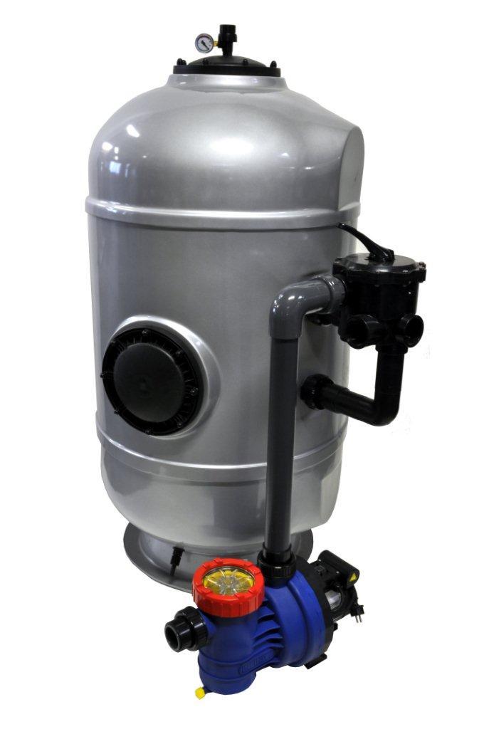 Qualitativ hochwertige Mittelschichtsandfilteranlage ausgestattet mit hochwertigem Filterkessel aus glasfaserverstärktem Polyester. Die Befüllung erfolgt von oben über eine gut zugängige Füllöffnung und seitliche Wartungsöffnung. Mit 6-Wege-Side-Mount-Ventil, bis 610 mm 11/2 ", ab 765 mm 2" Ventil , Kesselentleerung und Manometer. Selbstansaugende Speck Pumpe. 230V Pumpen sind mit Kabel und Stecker ausgestattet. Nennspannung ist jeweils angegeben. Saug- und Druckseite Klebe innen 63 mm bzw. 2" Innengewinde.