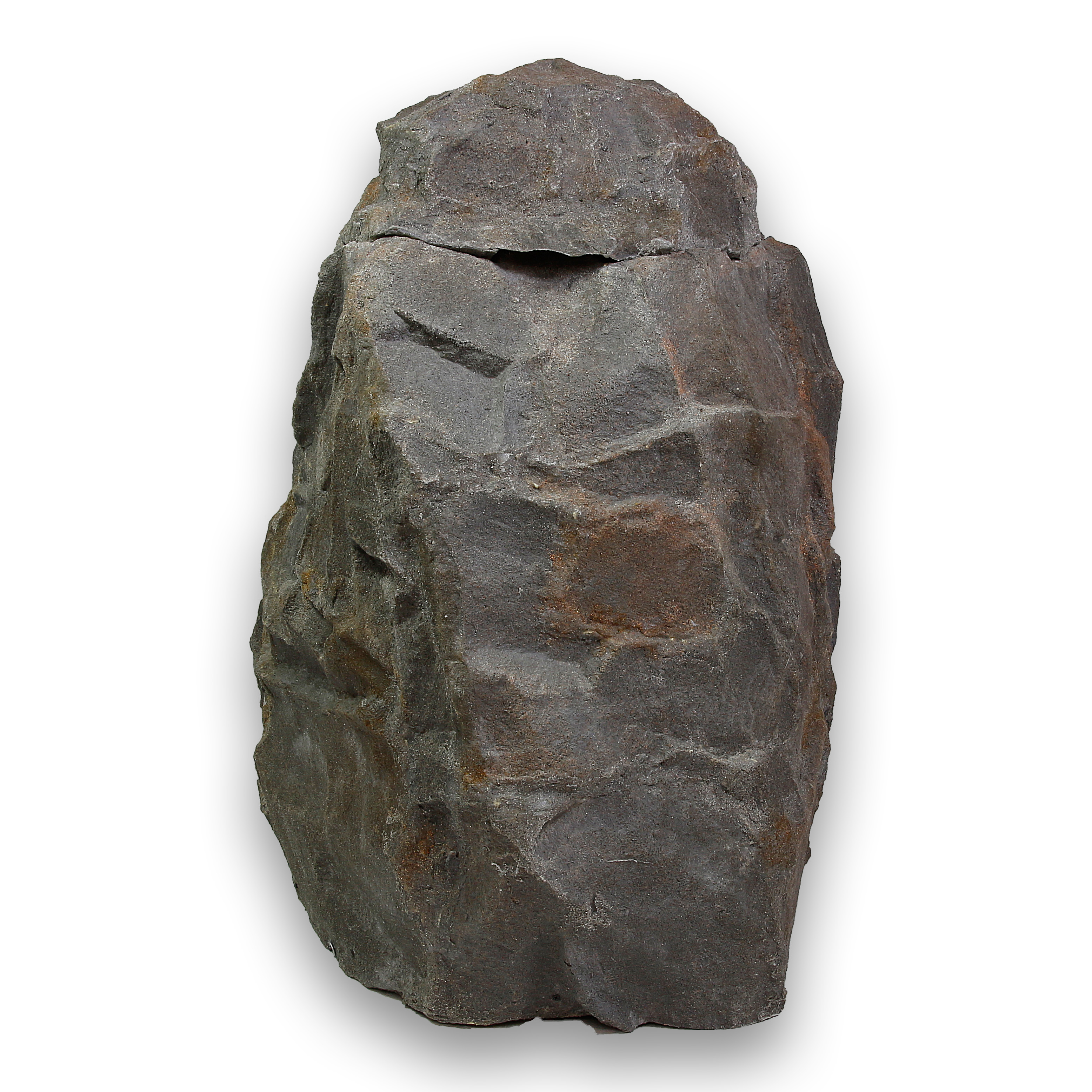 In Granit-Felsenoptik grau und in der Farbe sandstein. Die Abdeckungen bestehen aus glasfaserverstärktem Kunststoff in Handarbeit laminiert, mit gemahlenen Granitstein anteilen in der Oberfläche. Die Felsen sind unten offen und haben seitlich Entlastungsbohrungen für die Luftzirkulation. Deckel jeweils abnehmbar.