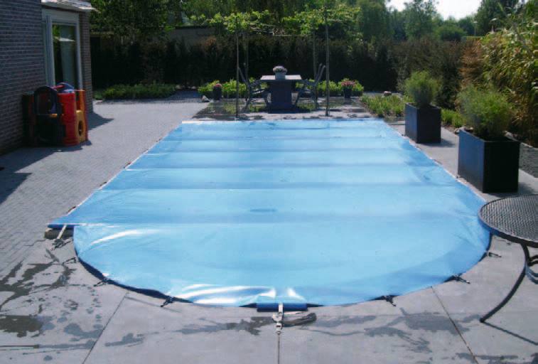 Preisgünstige Rollschutzabdeckung, gefertigt aus hochwertiger gewebeverstärkter Folie. In die Rollabdeckung sind Alurohre im Abstand von max. 130 cm eingearbeitet. Die Abdeckungen werden in Länge und Breite jeweils mit 50 cm Übermaß gefertigt, das als Auflagefläche auf dem Beckenrand dient.