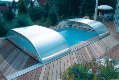 Verwandeln Sie Ihr Freibad in ein variables All-Wetter-Bad. Die Schiebeüberdachung Sun Roof kann komplett geöffnet werden oder – je nach Wind und Wetter – teilweise bis ganz geschlossen werden.