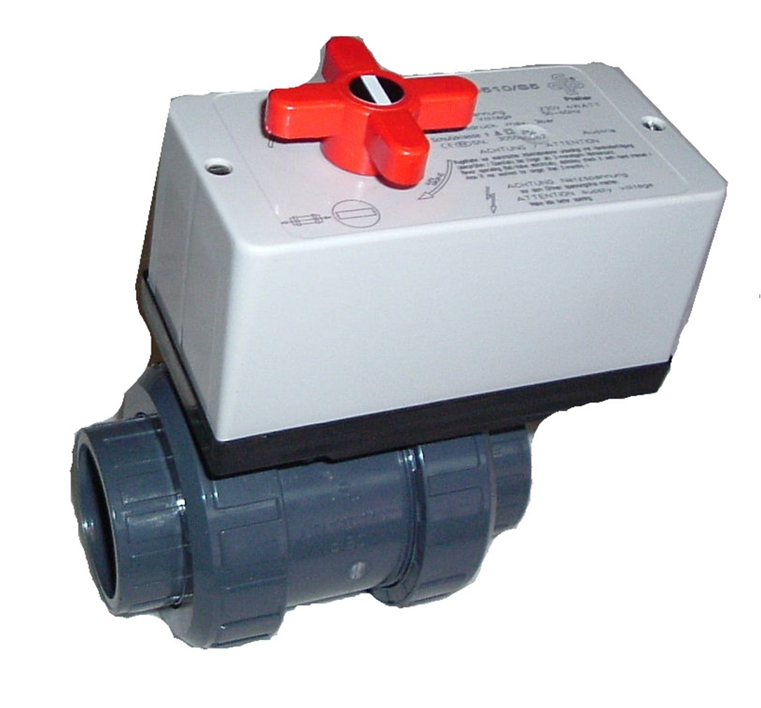 C 77382 | 2-Wege Stellantrieb von Aquacontrol 24V, mit Kugelhahn Ø 50 mm Klebe innen |