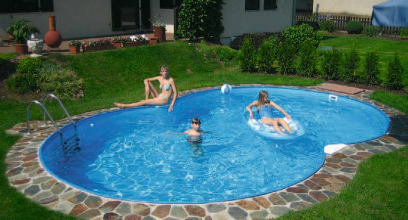 Achtung: Becken in 150 cm Tiefe müssen mindestens 50 cm tief eingebaut werden. Der in der Erde eingebaute Teil muss mit Magerbeton hinterfüllt werden. Wir empfehlen, die Innenhülle zusätzlich mit einem Bodenschutzvlies gegen mechanische Beschädigungen zu schützen.