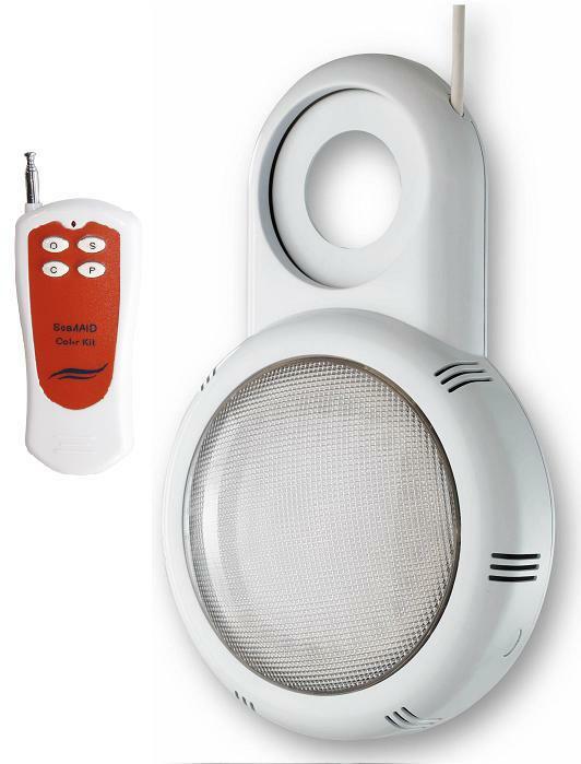 | A 33499 | LED Farblicht UWS mit Fernbedienung und 36 LED´s. Wählbar zwischen 7 festen Farben und 3 Farbspielen. Einfache Installation an einer bestehenden Einlaufdüse bzw. zum Nachrüsten für bestehende Aufstellbecken. Die Lieferung erfolgt kpl. mit Trafo 230V/12V und 6 m Kabel. |
