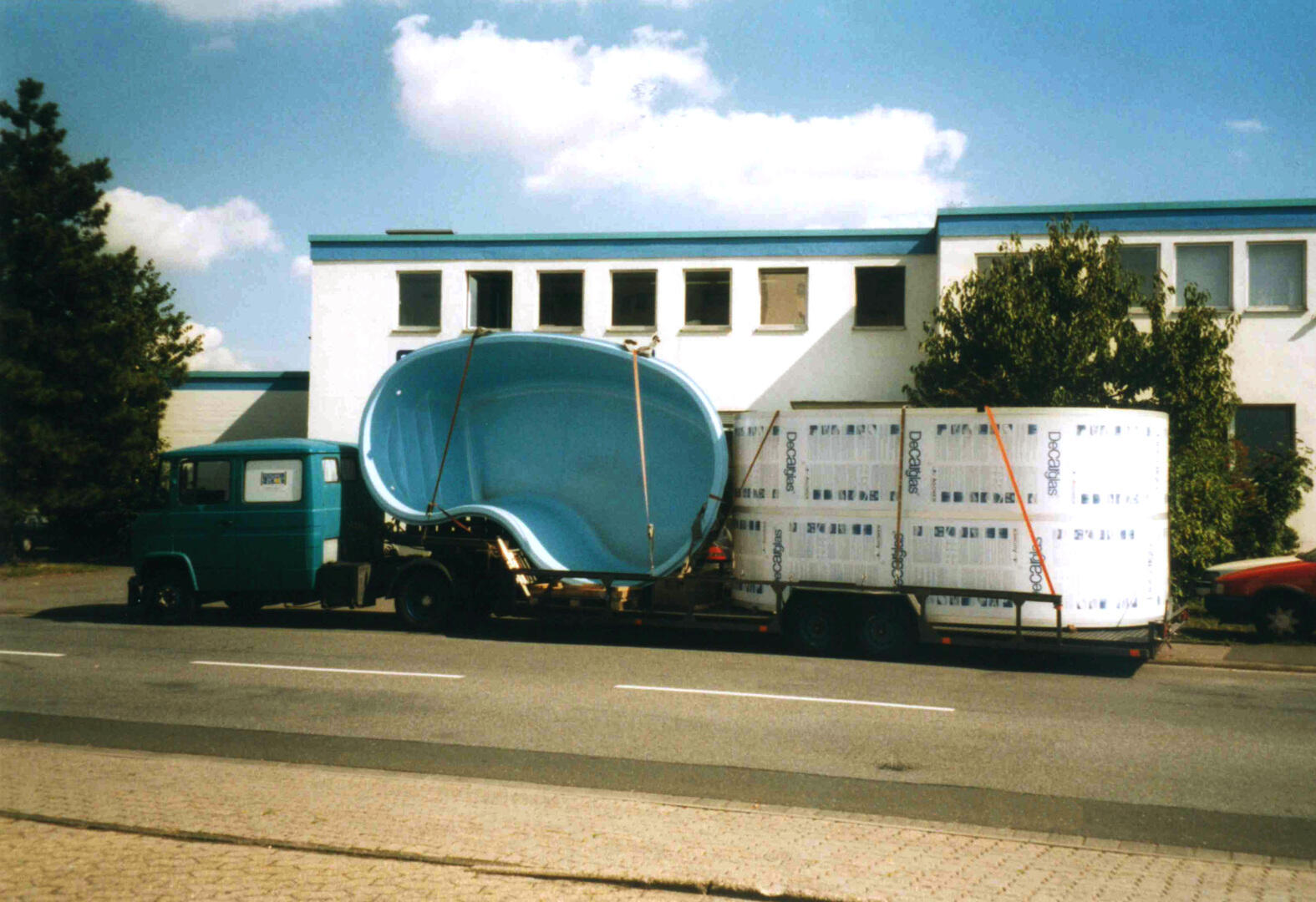 Durch den kontinuierlichen Ausbau der Poolproduktion und der Filterfertigung ist das damalige Vertriebs- und Produktionsgebäude nicht mehr ausreichend gewesen, weswegen der Umzug an einen neuen Standort unumgänglich war. Noch heute befindet sich unser Firmengelände in der Daimlerstraße in Aschaffenburg.