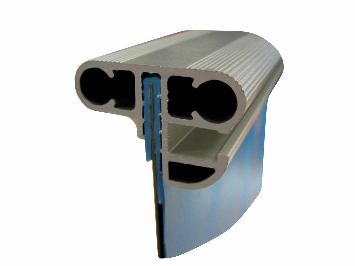 Die Anforderungen der Händler bei den klassischen Stahlwandbecken sind bis dato gestiegen und es wurden neue Ideen bzw. noch stabilere und bessere Handläufe in Aluminium gefordert. Zeitnah wurden die ersten Schwimmbecken mit Handläufen aus eloxiertem Aluminium produziert.