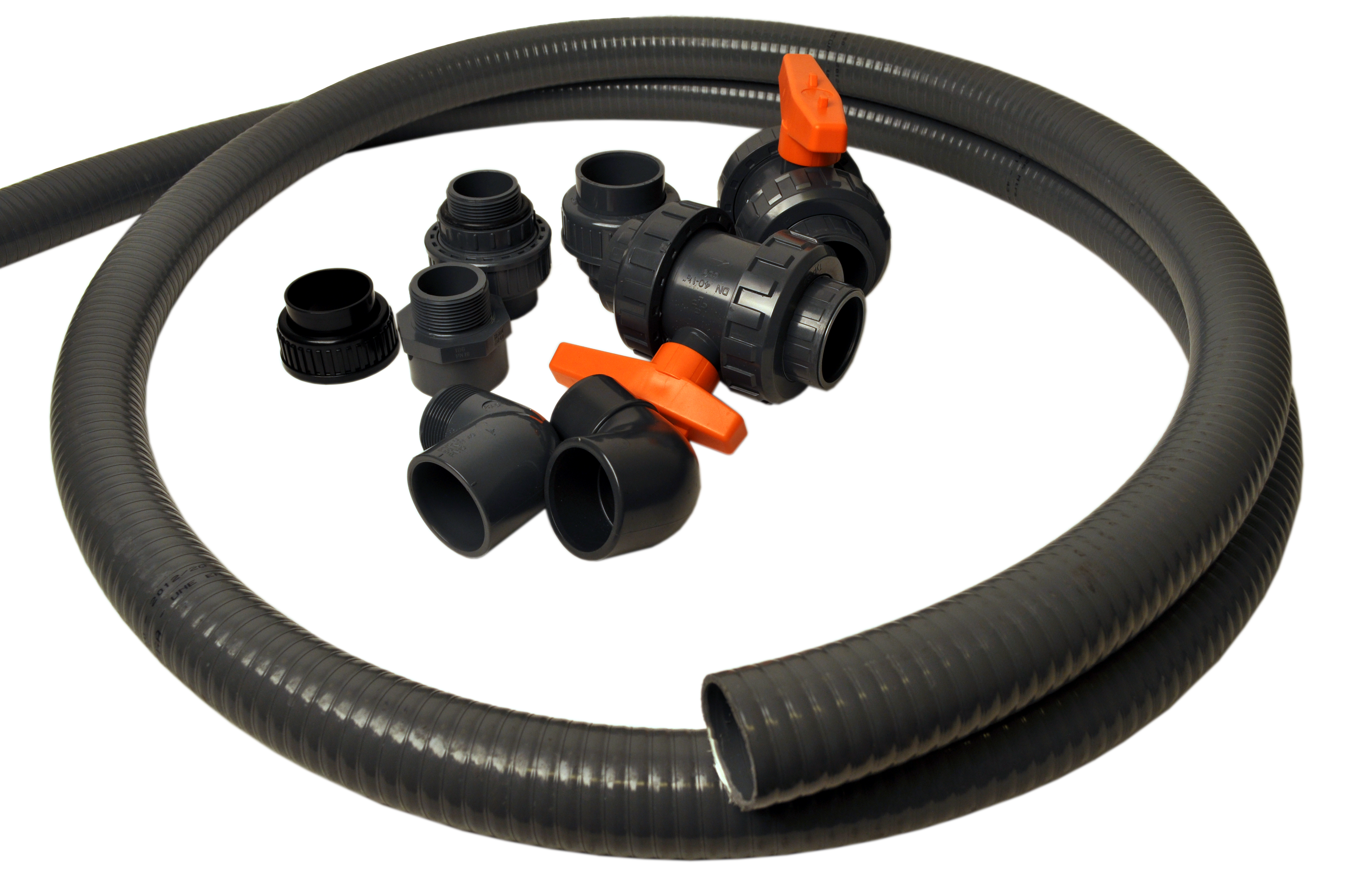 Verrohrungsset mit Schwimmschlauch für bis ca. 5 m Abstand zwischen Filteranlage und Becken: Das Set ist für flexible Installation insbesondere bei Aufstellbecken empfohlen.