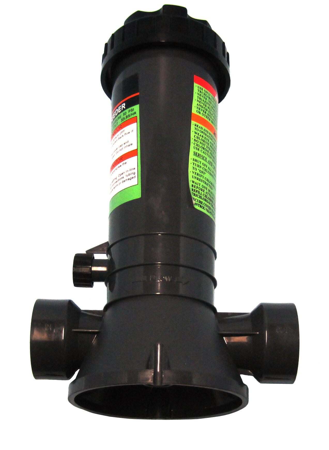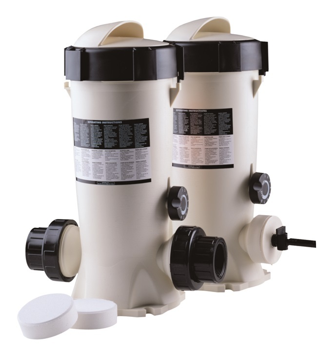 Wir empfehlen den Einbau eines Wasserpflege-Einbaudosierers im Bypass mit Kugelhähnen, damit Sie die Zugabe von Chlor in Ihr Becken jederzeit unterbrechen können und auch die Chlortabletten einfach in den Behältern einlegen können.